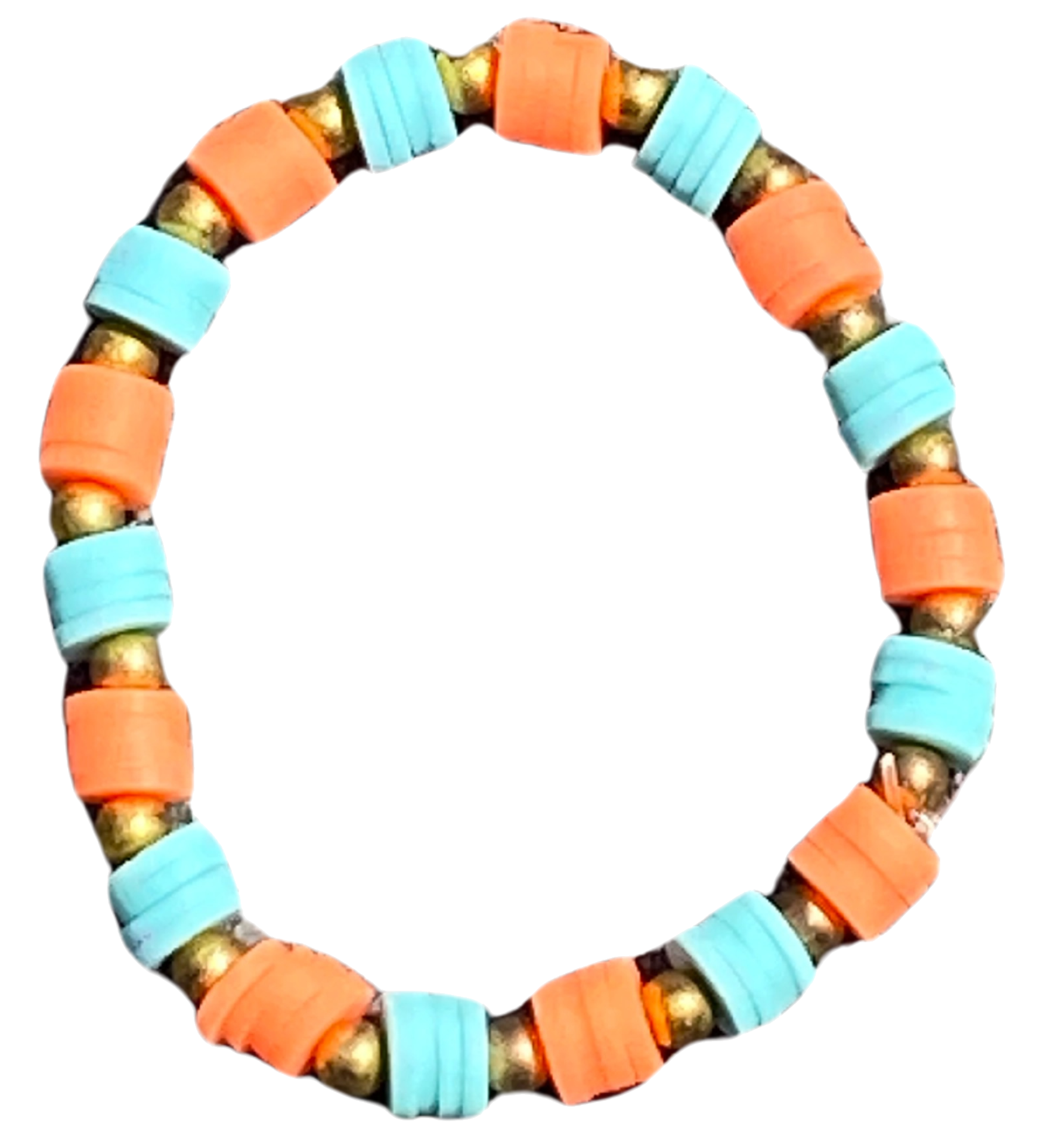 Oranje/blauw armbandje met pareltjes voor je knuffel.